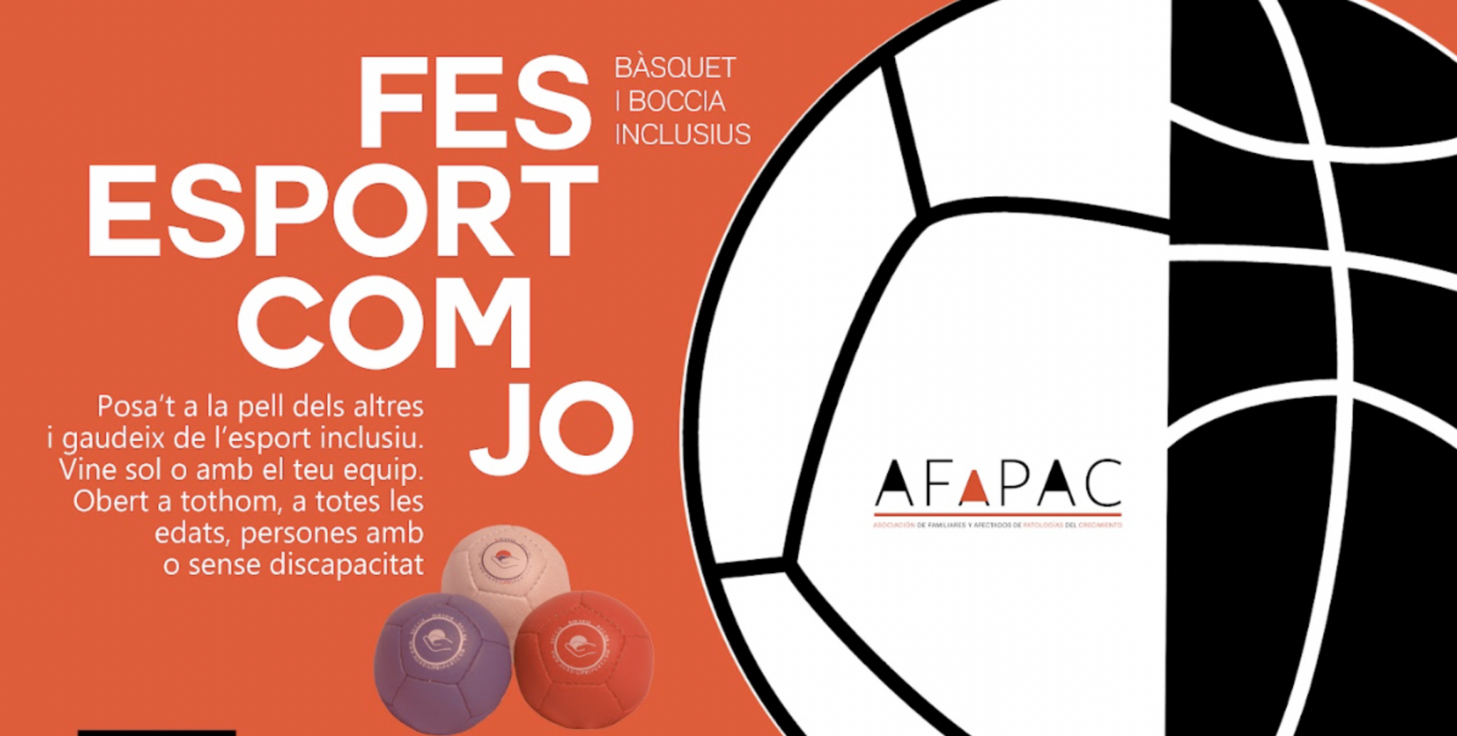 8è FES ESPORT COM JO 18 octubre 2025 - 09:00 - 14:00 El CEM La MarBella acollirà la 8ª edició de la jornada d’esport inclusiu d’AFAPAC. Una jornada oberta a tothom on els participants es posen els